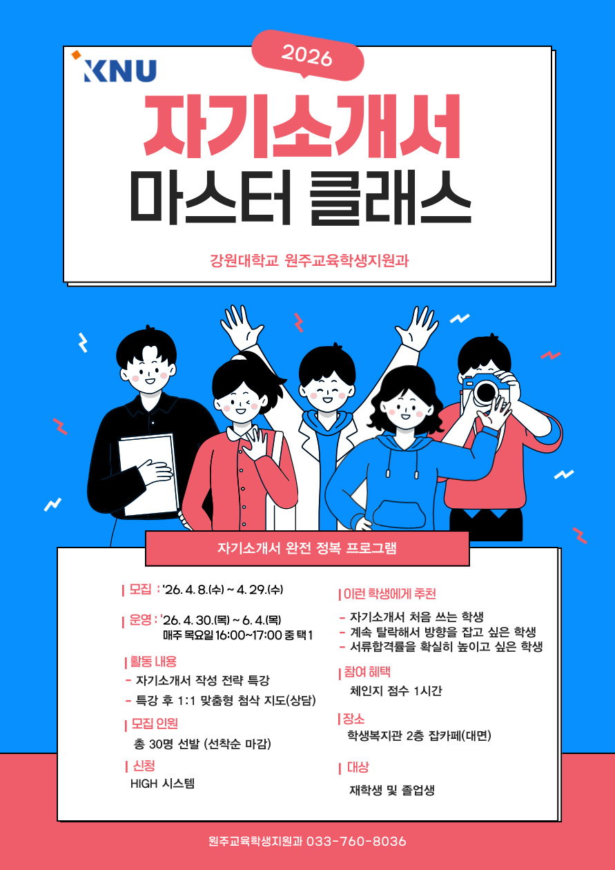 '26년도 1학기 원주캠퍼스「자기소개서 마스터 클래스」 프로그램 홍보 요청